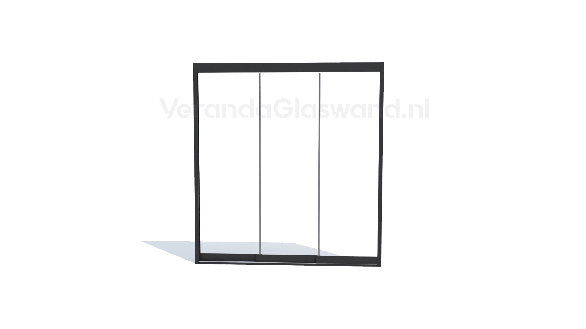 Een glazen schuifwand met 3 glaspanelen van 98cm sluit een opening af tot 288cm. Bij deze breedte overlappen de glaspanelen 3cm. Is de opening kleiner dan 288cm, dan is dat geen probleem. De overlap wordt dan wat groter Bij een te grote overlap kan het zijn dat dat smallere panelen of het gebruik van minder glaspanelen betere opties zijn