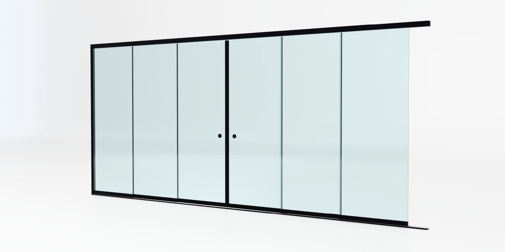 Een lange 3-rail lijkt op een 6-rail, want ook hier worden 6 glaspanelen gebruikt. Het verschil is dat deze panelen over 3 rails lopen in plaats van 6, vandaar de naam lange 3-rail.
