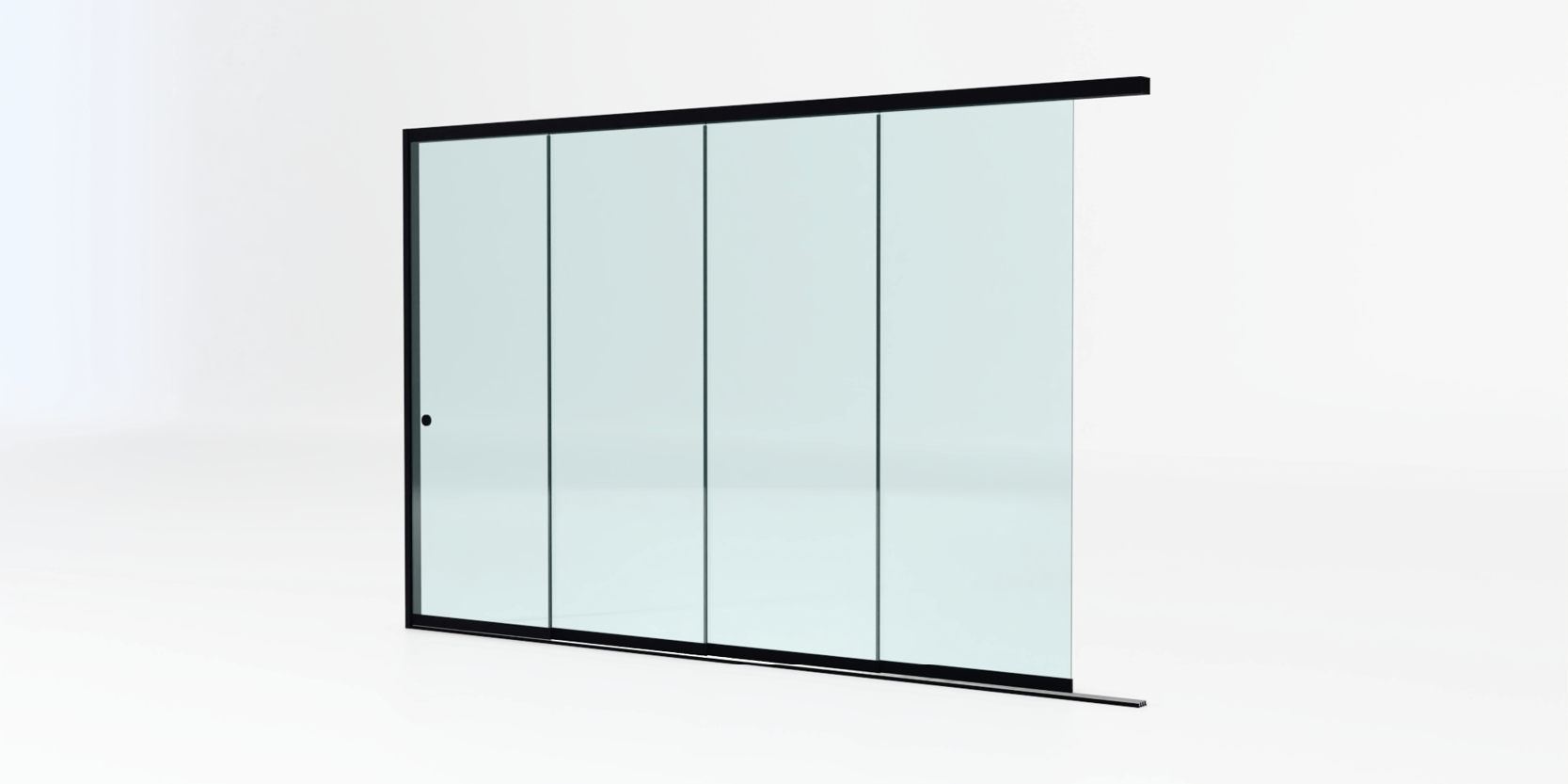 | Wielen | 4 verstelbare wielen per glaspaneel |