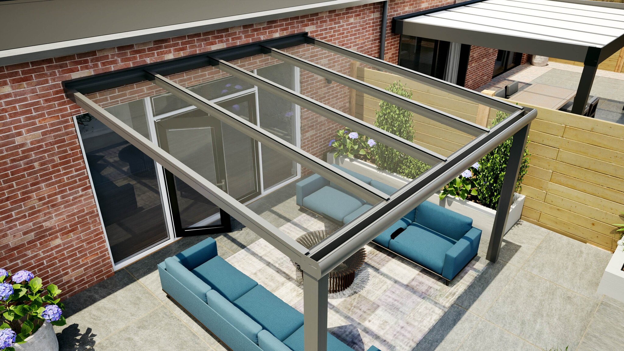 De overkapping is ook geschikt voor glazen schuifwanden om een prachtige serre te maken. Dit en andere accessoires vindt je bij de gerelateerde producten hieronder op deze pagina.