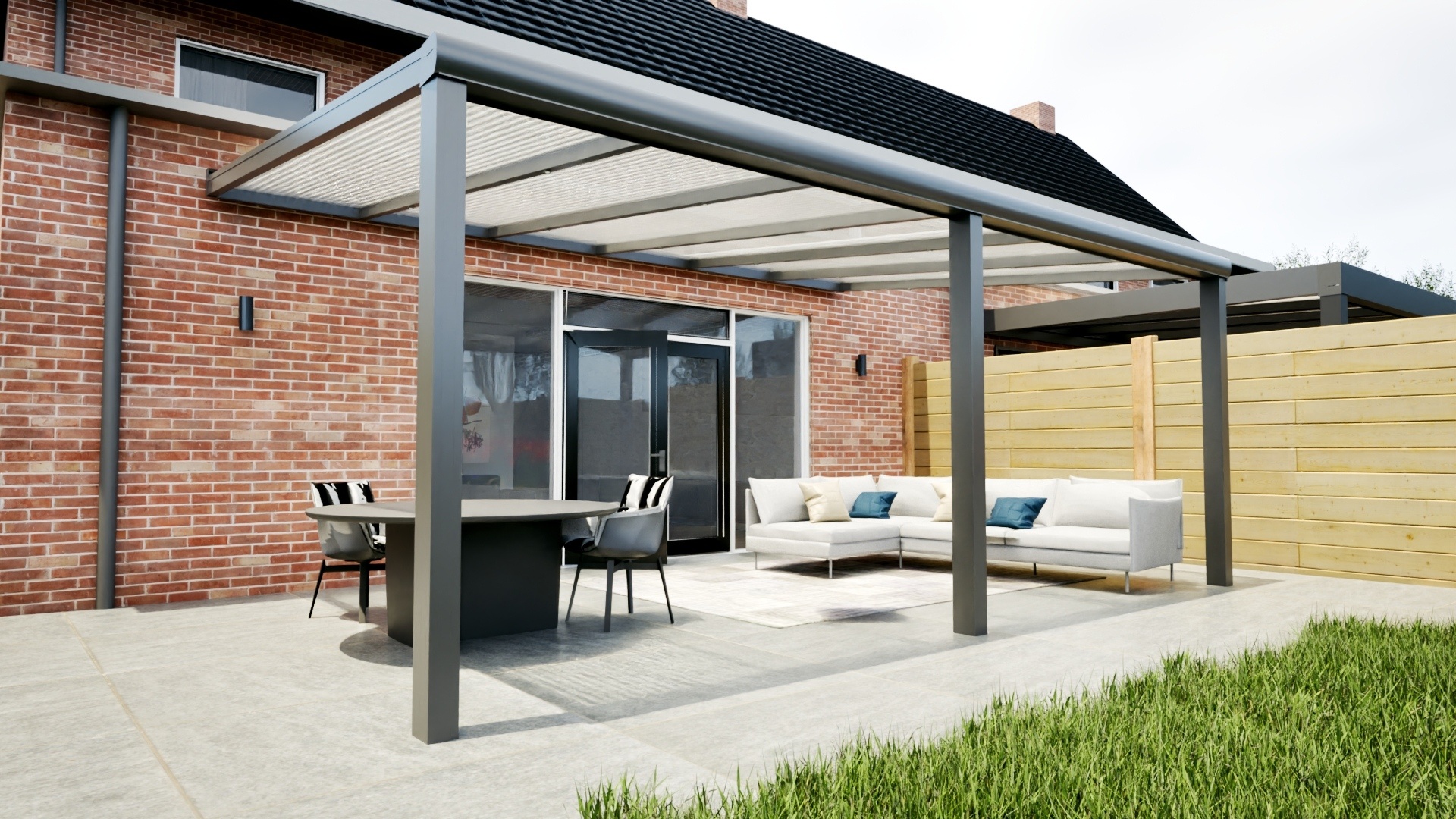 De overkapping is ook geschikt voor glazen schuifwanden om een prachtige serre te maken. Dit en andere accessoires vindt je bij de gerelateerde producten hieronder op deze pagina.