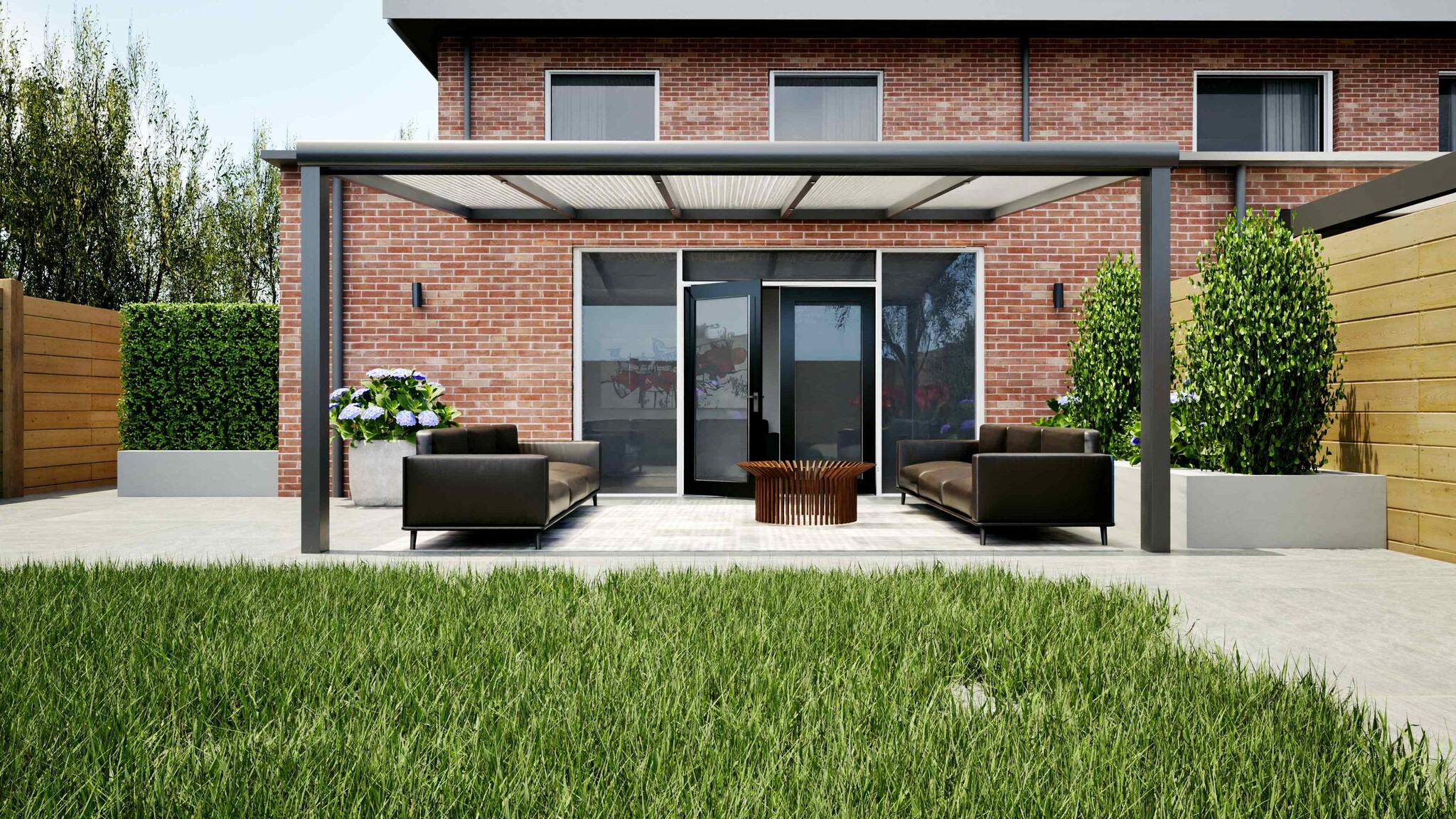 De overkapping is ook geschikt voor glazen schuifwanden om een prachtige serre te maken. Dit en andere accessoires vindt je bij de gerelateerde producten hieronder op deze pagina.