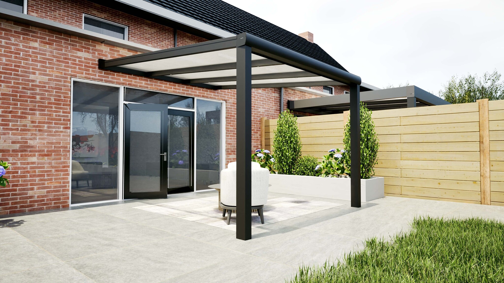 De overkapping is ook geschikt voor glazen schuifwanden om een prachtige serre te maken. Dit en andere accessoires vindt je bij de gerelateerde producten hieronder op deze pagina.