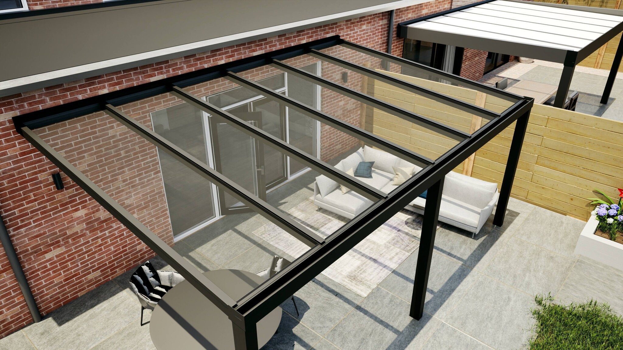 De overkapping is ook geschikt voor glazen schuifwanden om een prachtige serre te maken. Dit en andere accessoires vindt je bij de gerelateerde producten hieronder op deze pagina.