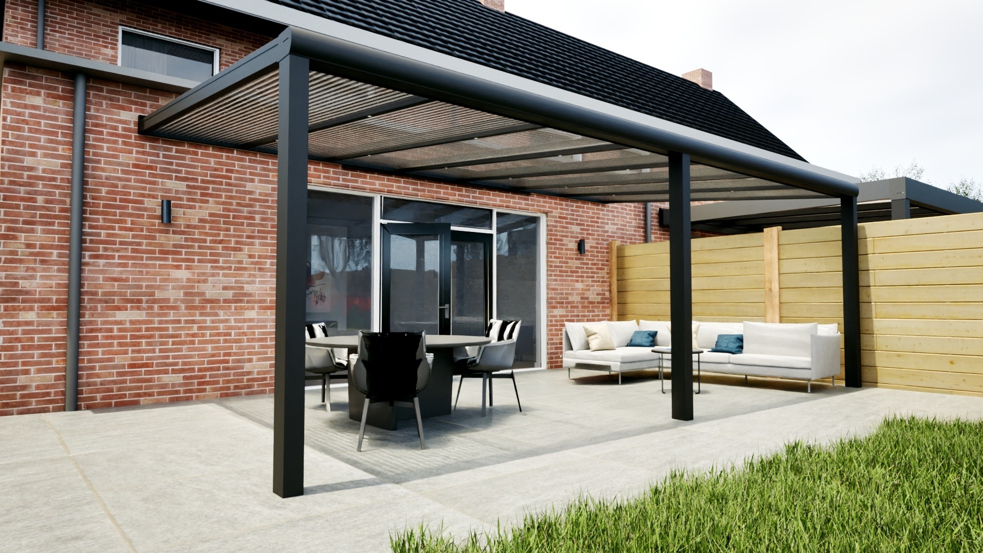 De overkapping is ook geschikt voor glazen schuifwanden om een prachtige serre te maken. Dit en andere accessoires vindt je bij de gerelateerde producten hieronder op deze pagina.