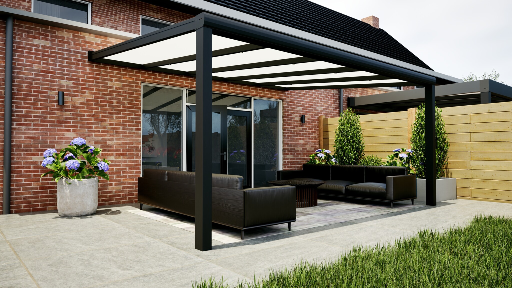 De overkapping is ook geschikt voor glazen schuifwanden om een prachtige serre te maken. Dit en andere accessoires vindt je bij de gerelateerde producten hieronder op deze pagina.
